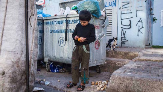 Firas och hans son Uday, 7 år, samlar sopor i staden Izmir i Turkiet. Familjen flydde från Aleppo i Syrien för 16 månader sedan, när deras hem förstördes i en granatattack. Familjen bodde åtta månader i Sanliurfa innan de flyttade till Izmir.